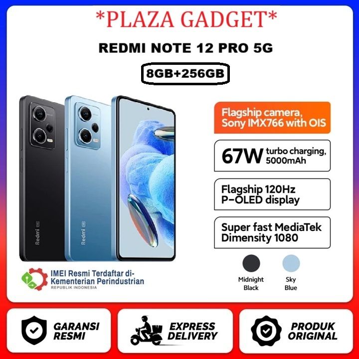 XIAOMI Redmi Note 12 Pro 5G 8/256GB Kamera 50MP Sony IMX766 P-OLED Prosesor MediaTek Dimensity 1080 Baterai 5000mAh
