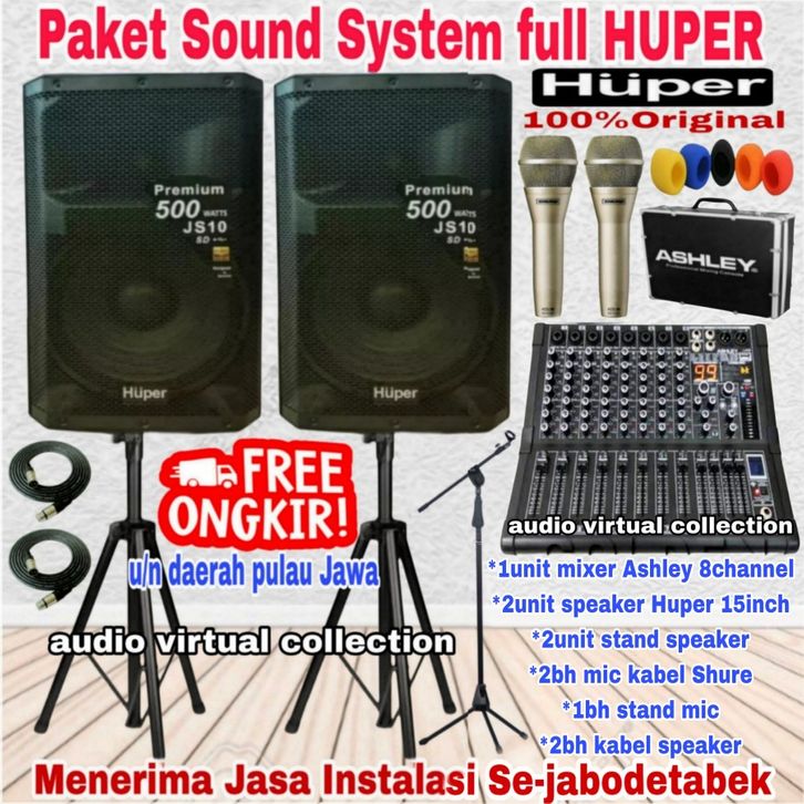 Paket Sound System Speaker HUPER JS10 15 inch Komplit + Mixer