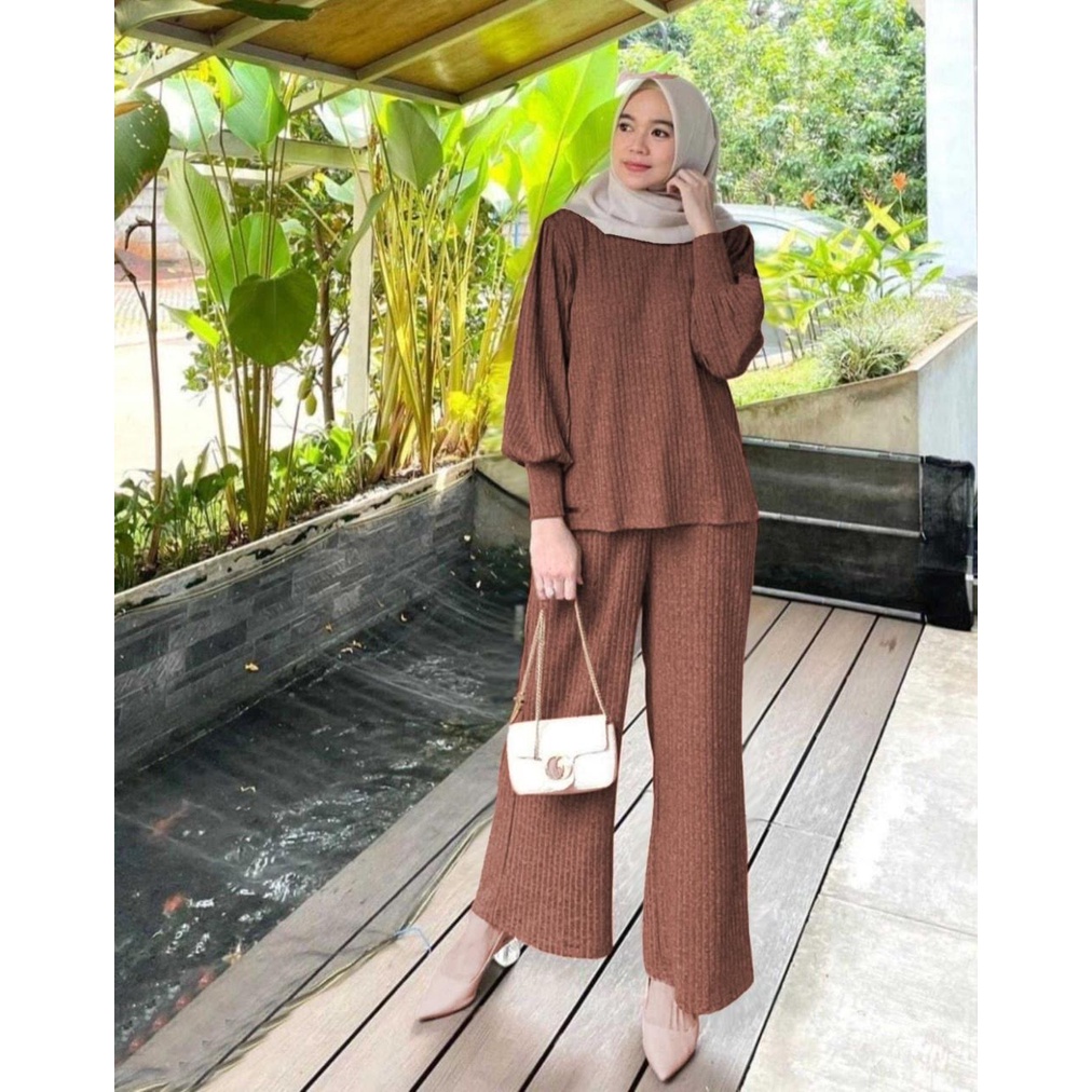ELDE 12 / SET HARAGA L / XL / XXL / 3XL STELAN BAHAN KNIT IMPORT TEBAL CELANA