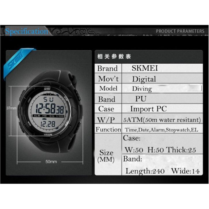 Jam Tangan Pria Digital SKMEI Grey Water Resistant 50M