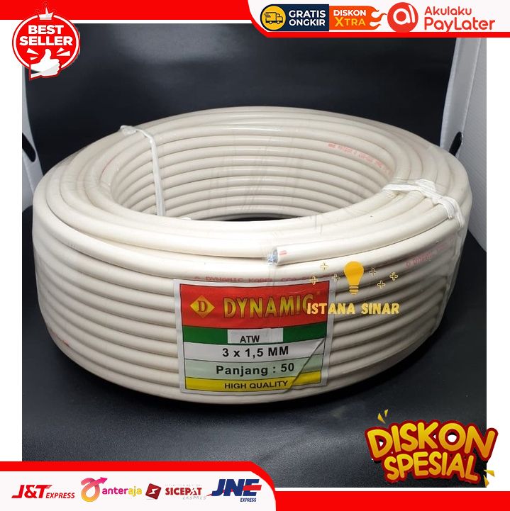 DISKON/KABEL LISTRIK DYNAMIC NYM 3 X 1.5 / KABEL TEMBAGA / KABEL KAWAT 1 ROLL 50 METER