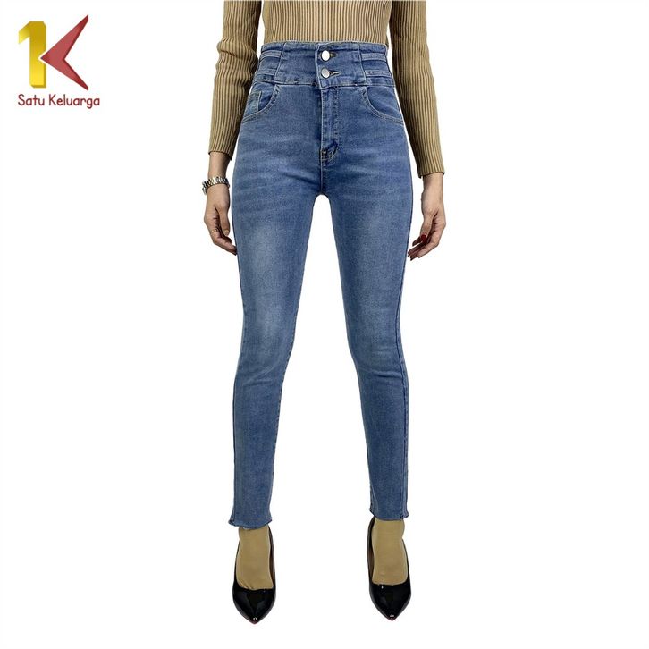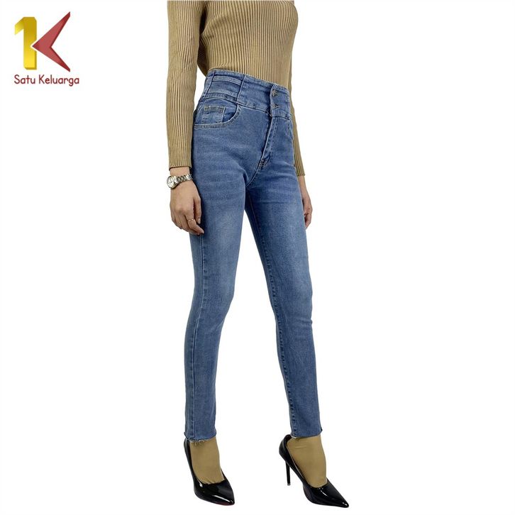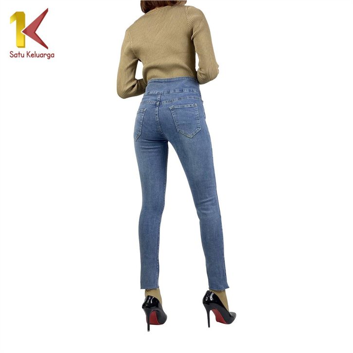 Unfinished Cut Stretch Jeans Highwaist Celana Panjang Wanita Denim HW Ngaret 2 Kancing Jins Kekinian 1K P382