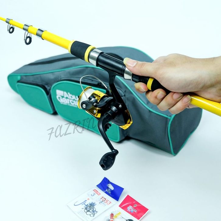 1 SET PANCINGAN LENGKAP TELESKOPIC BAHAN FIBER 150 CM KEKUATAN 5 KG BONUS TAS JORAN ABU GARCIA UKURAN 75CM