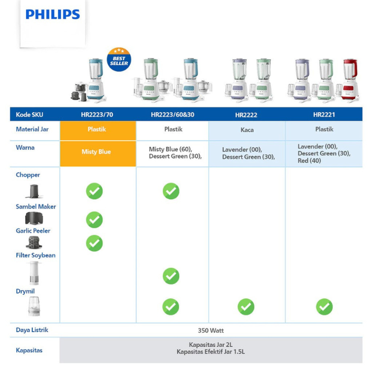 BLENDER PHILIPS KACA PLASTIK 4 IN 1 HR 2223 2115 2106 2116 HR2024 5000 2 LITER CHOPPER PHILIP 3 IN 1 MURAH ORI TERBARU