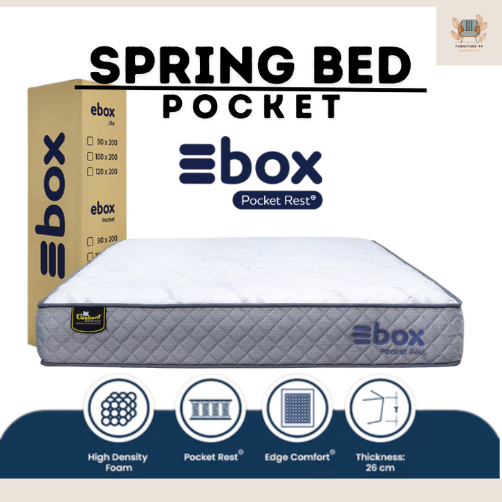 SPRING BED ELEPHANT EBOX TEBAL 26 20 CM KASUR SPRINGBED POCKET PEGAS 180X200 160X200 120X200 90X200 MATRAS TIDUR IN BOX