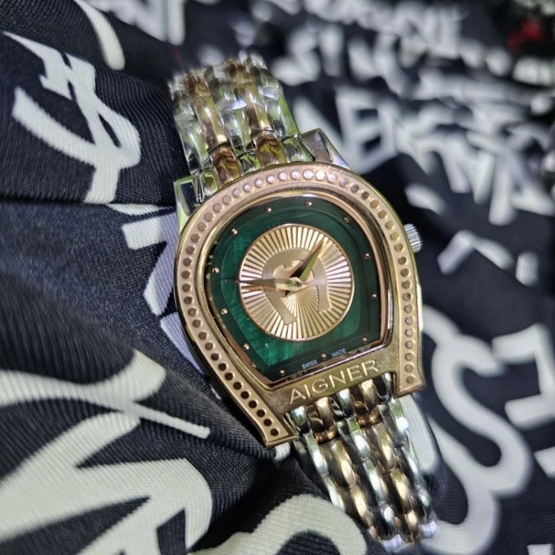 JAM TANGAN WANITA AIGNER VITTORIA VARESE A21104 SILVER COMBI ROSEGOLD HIJAU STAINLESS STEEL - FREE BOX BIASA FREE ONGKIR