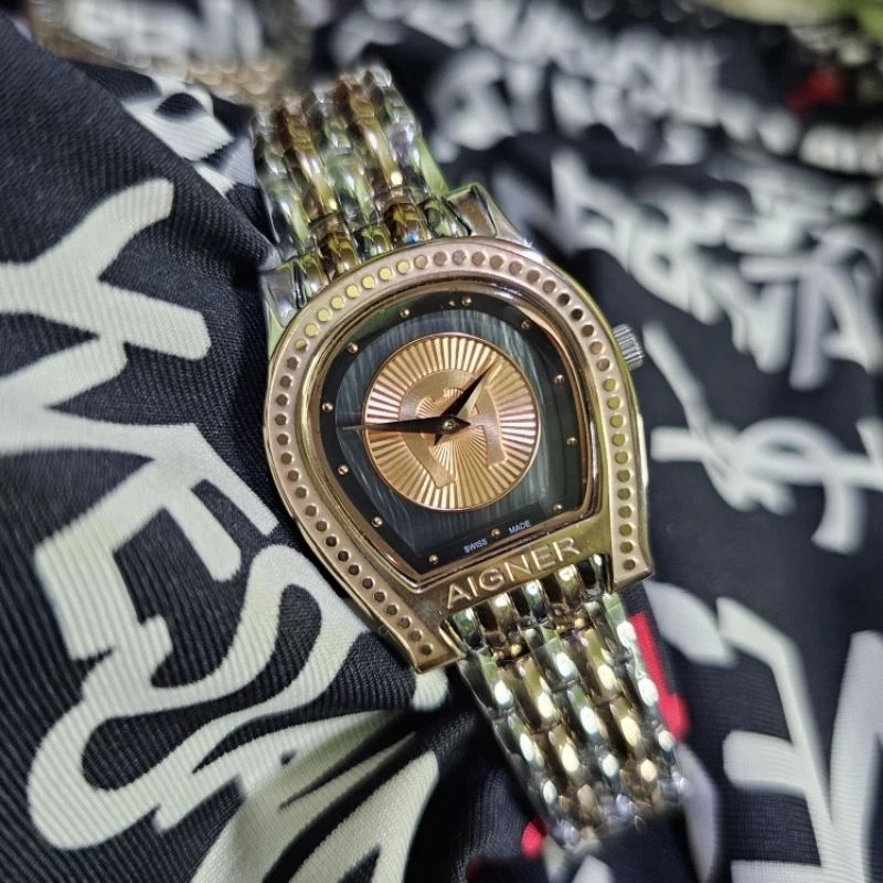 JAM TANGAN WANITA AIGNER VITTORIA VARESE A21104 SILVER COMBI ROSEGOLD HITAM STAINLESS STEEL - FREE BOX BIASA FREE ONGKIR