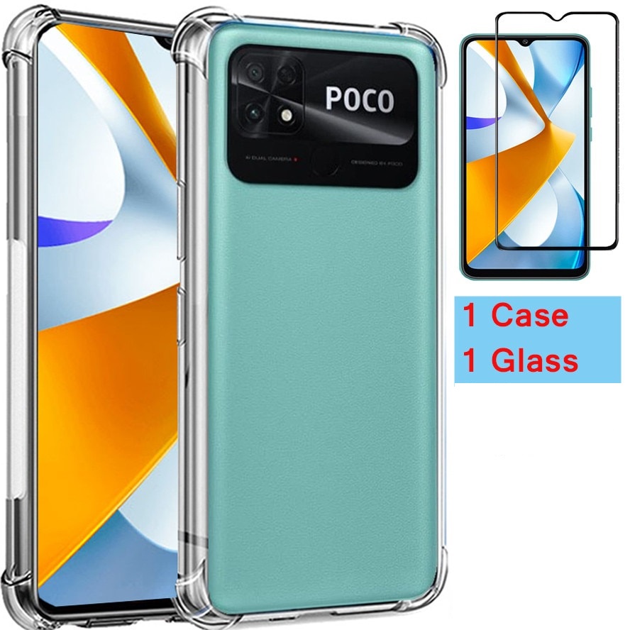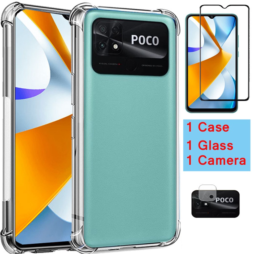 COMBO HEMAT XIAOMI POCO C40 3IN1 CASE SOFTCASE TEMPERED GLASS CAMERA LENS XIAOMI POCO C40