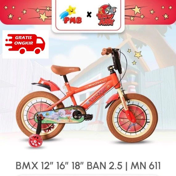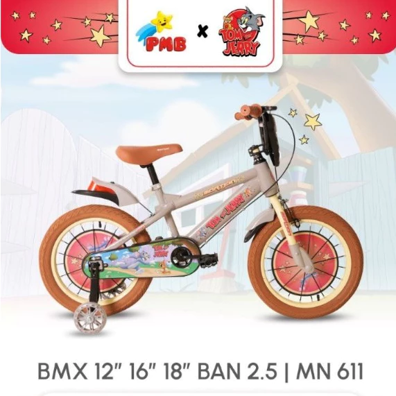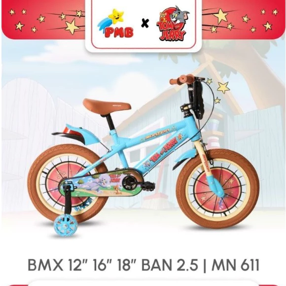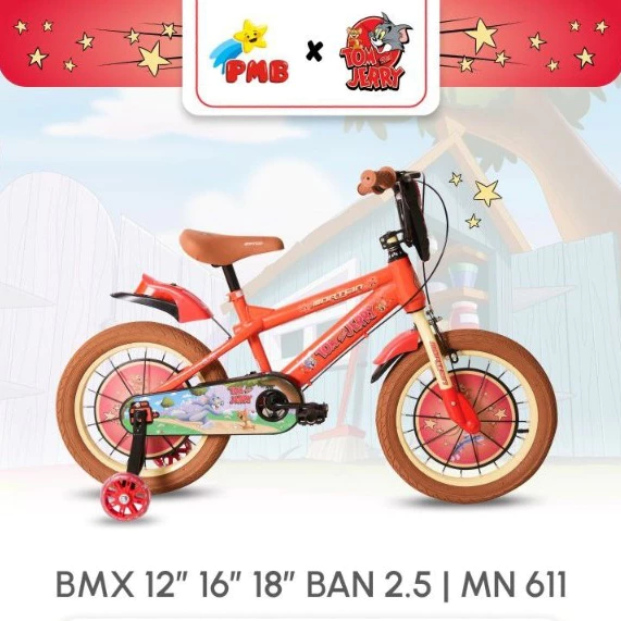 Sepeda BMX Anak Laki PMB Mortein MN611 Tom n Jerry 12/16/18x2.50 Inch