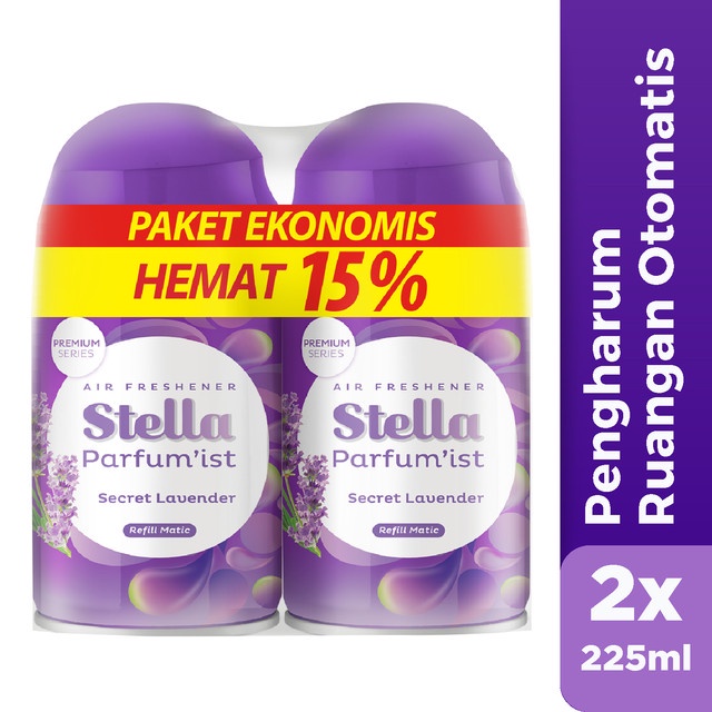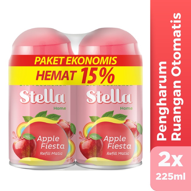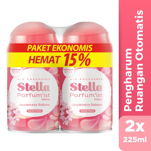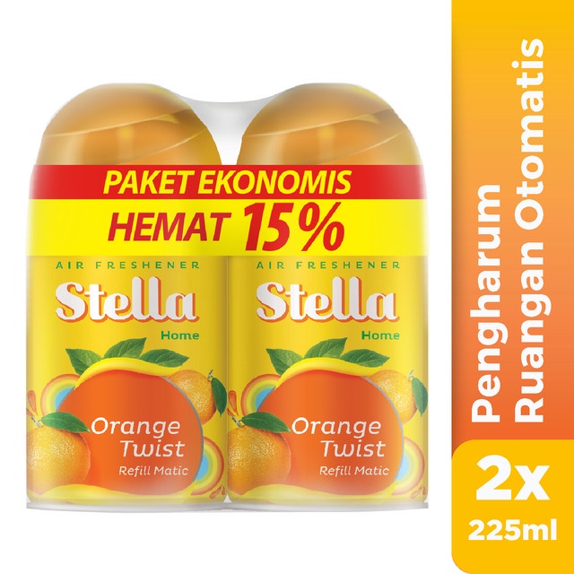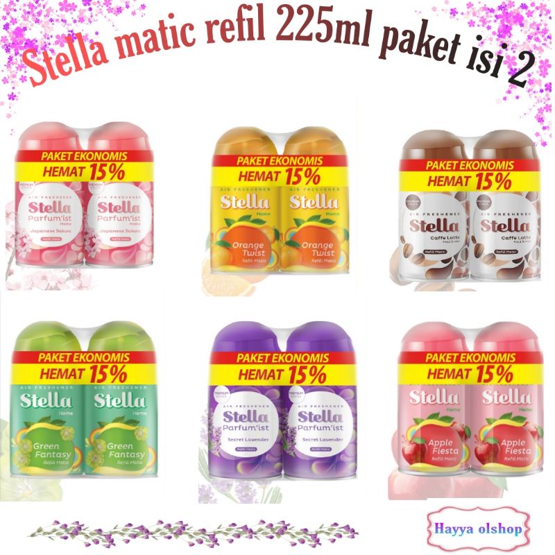 Stella Matic Refill Isi 2 - Orange Caffe Green Lavender Apple Sakura 225ml Multipack - Refill Pengharum Ruangan Otomatis