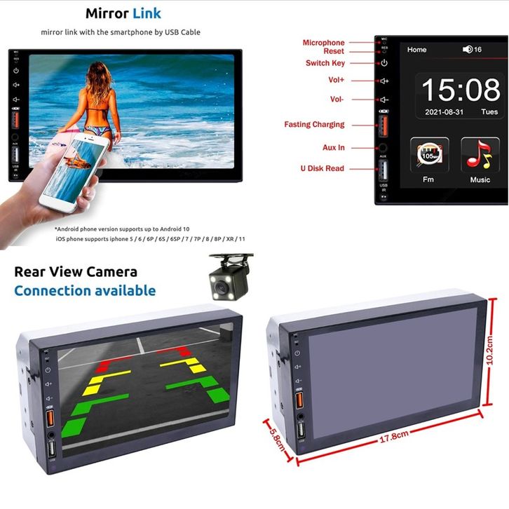 Head Unit 7 Inch Double Din MP5 Player Touch Screen Bluetooth 7021 7018B 7010B Head Unit Mobil Tape Mobil Bluetooth