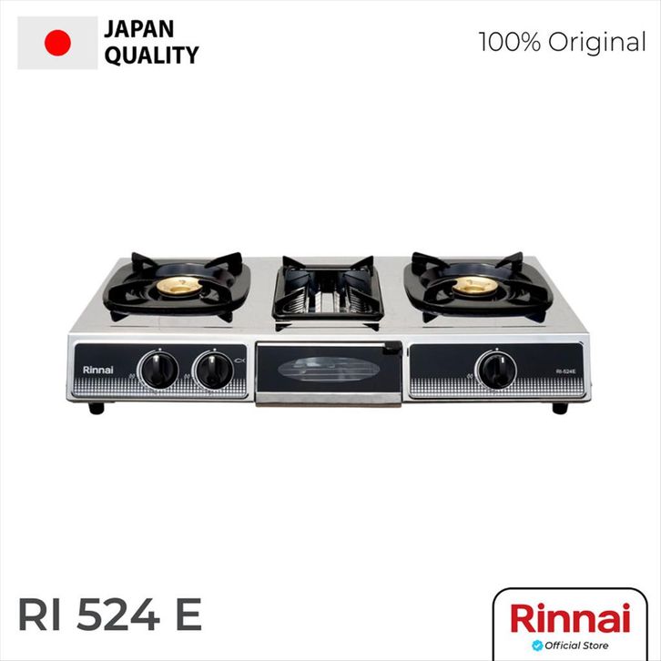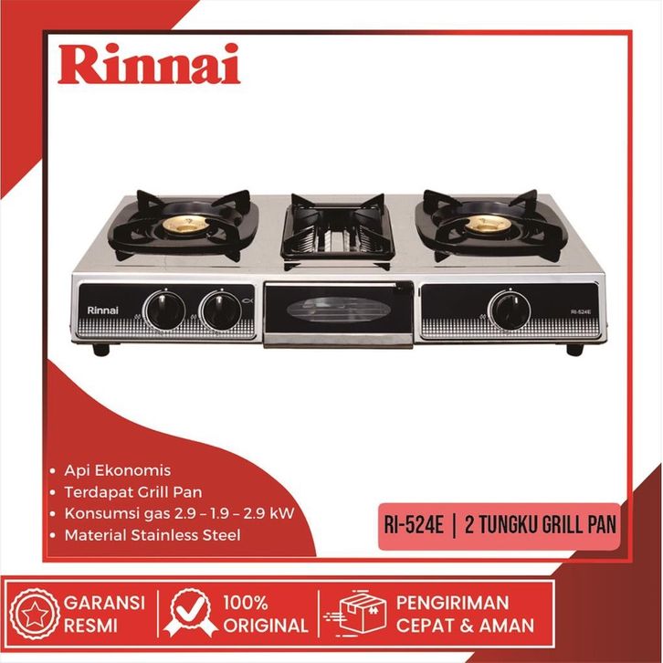KOMPOR GAS RINNAI RI524E / RI-524 / RI524 GRILL PEMANGGANG (API EKONOMIS / 2 TUNGKU) 100 persen ORIGINAL