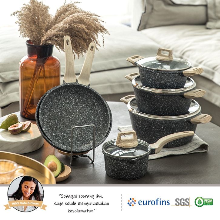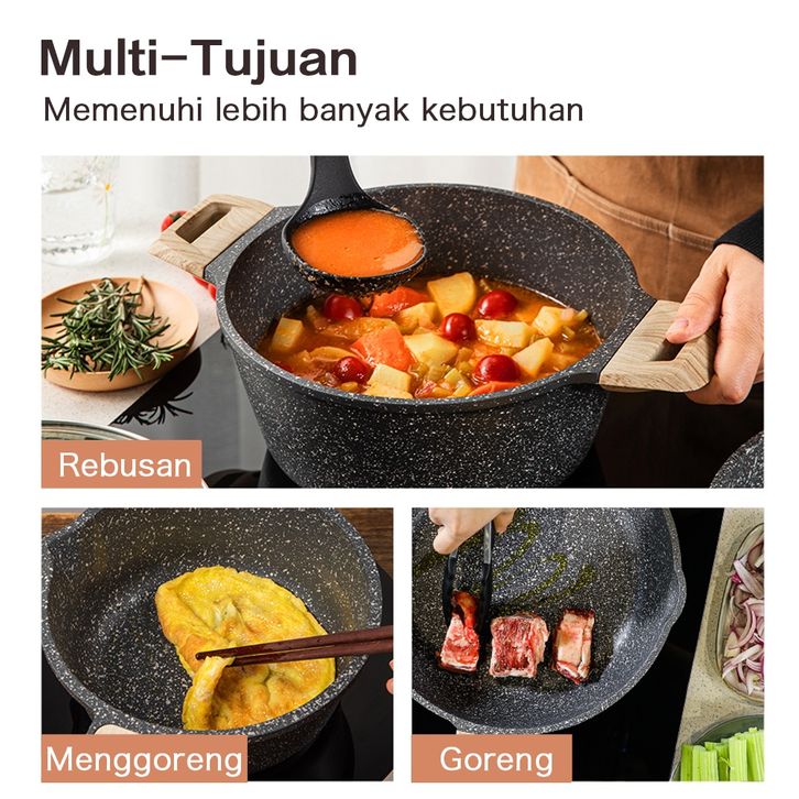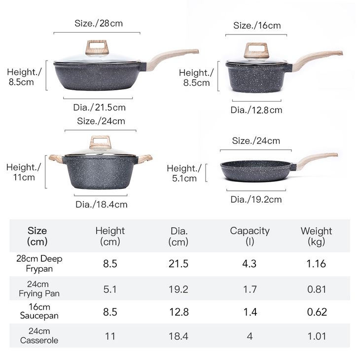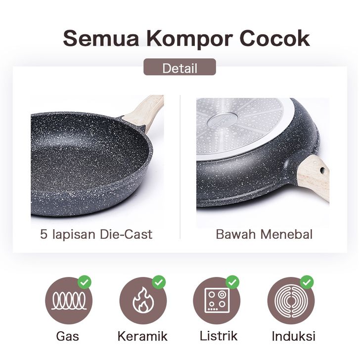 Carote Essential Woody Antilengket Peralatan Masak 4PCS Peralatan Dapur Cocok Untuk Semua Kompor Wajan Panci Paket Kelua