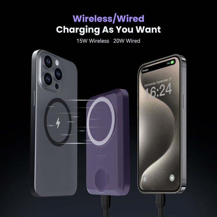 Powerbank Wireless 2in1 / Power Bank Wireless Magnetic / Powerbank Iwatch 10000 mAh Type C / Powerbank Iphone / Murah