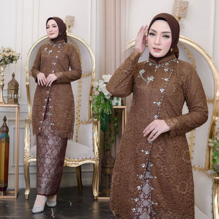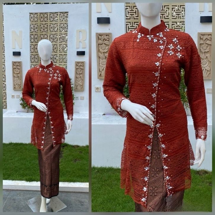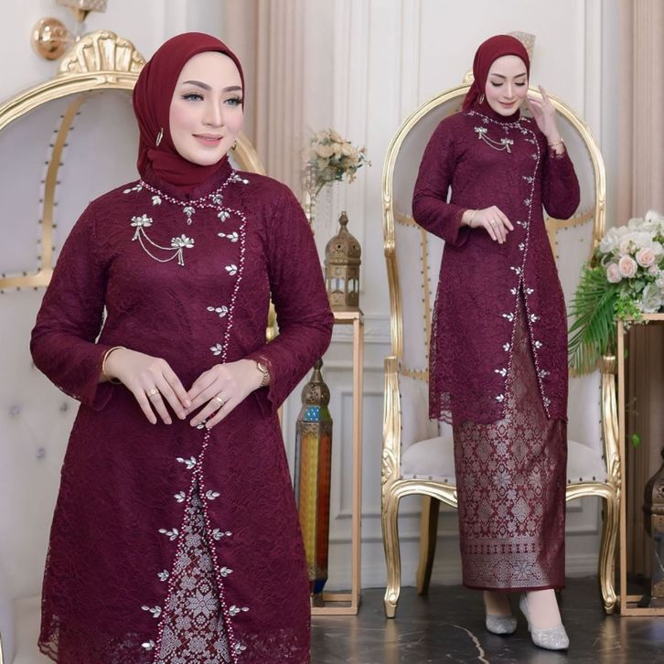 Set Tunik Janggan Rok Songket - Kebaya Jumbo Fit Ld 130 - Kebaya Modern - Set Kebaya Wisuda - Kebaya Brukat Terbaru
