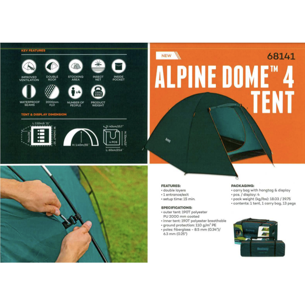 Bestway New ALPINE DOME 4 Tent 68141 Tenda Camping Dome 4 Orang / Pavillo Activeridge 4P 68091 / Montana Pavillo X4 6804