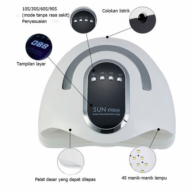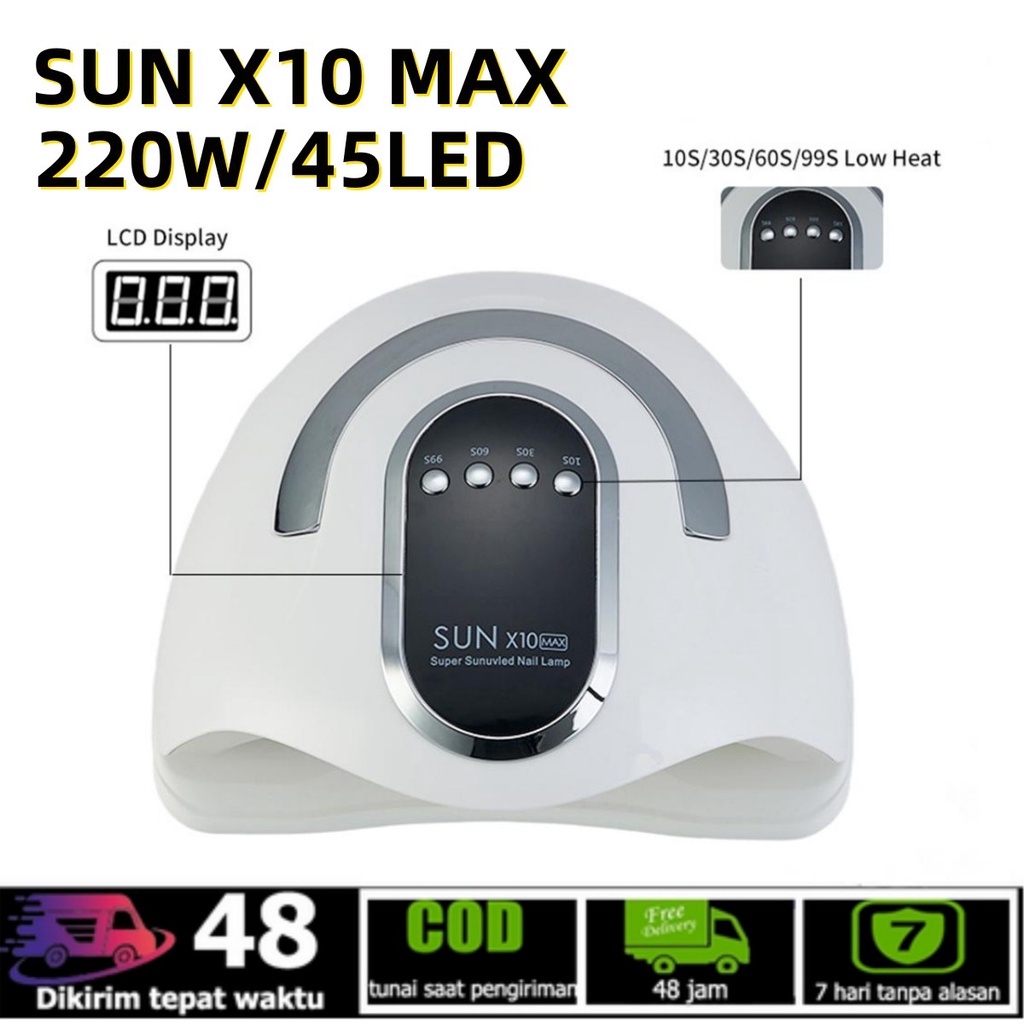 ( ) SUN X10 MAX 220W 45 LEDS PENGERING KUTEK GEL LED UV NAIL LAMP ALAT PENGERING KUTEK GEL MINI NAIL DRYER