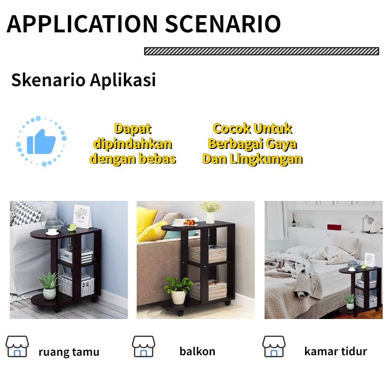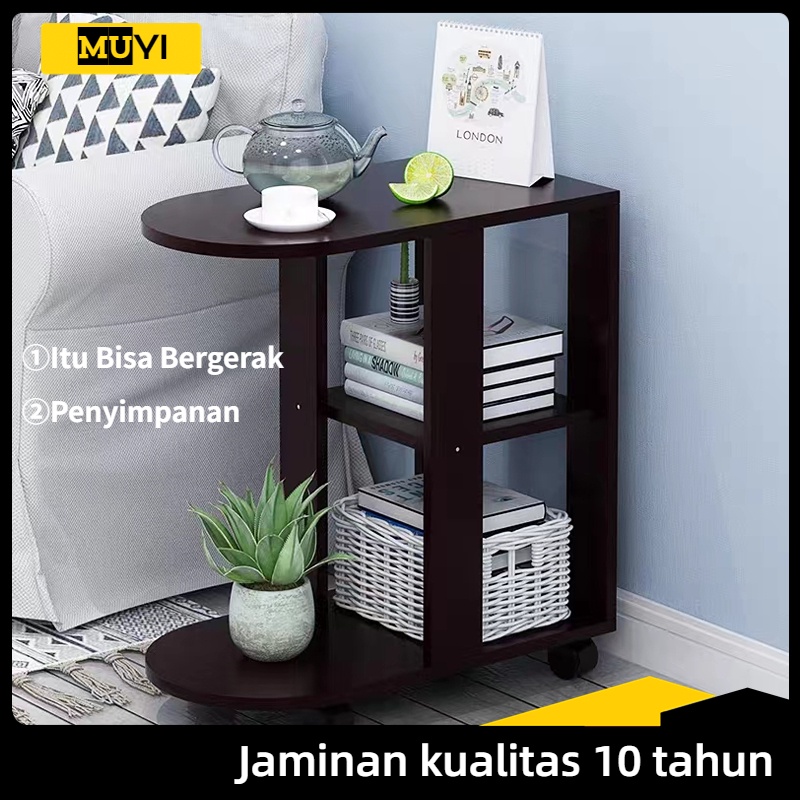 Meja Nakas Meja Samping Tempat Tidur Penyimpanan Dua Lapis Minimalis Meja Kecil Piring Tebal Mudah Dipindahkan Muda