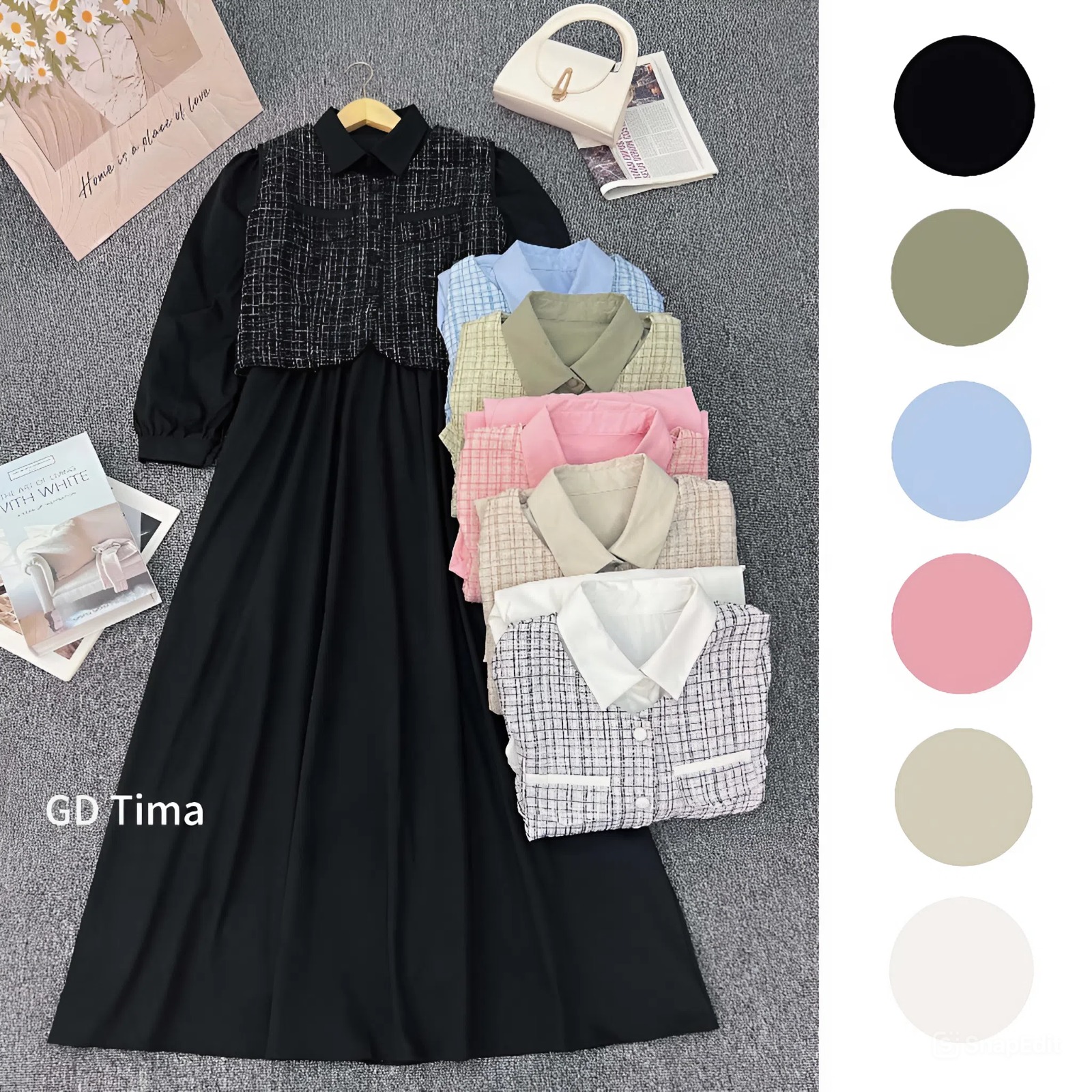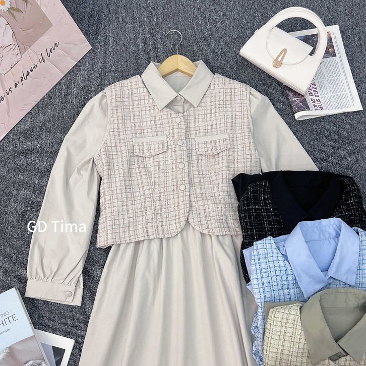 Setelan Wanita Kekinian Rompi Lengang Panjang Elegant Dress Baju Lebaran 2026 One Set Rok Wanita Mewah PREMIUM KEKINIAN