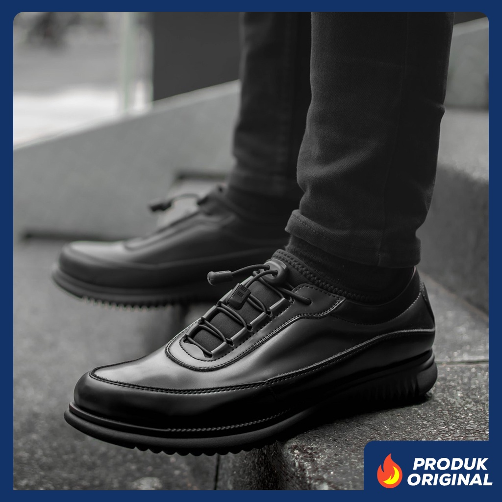 WAVE BLACK ORIGINAL x VOLVE PROJECT Sepatu Formal Full Hitam Tali Pria Pantofel Kerja Kantor Dinas Resmi Guru PNS Kantor
