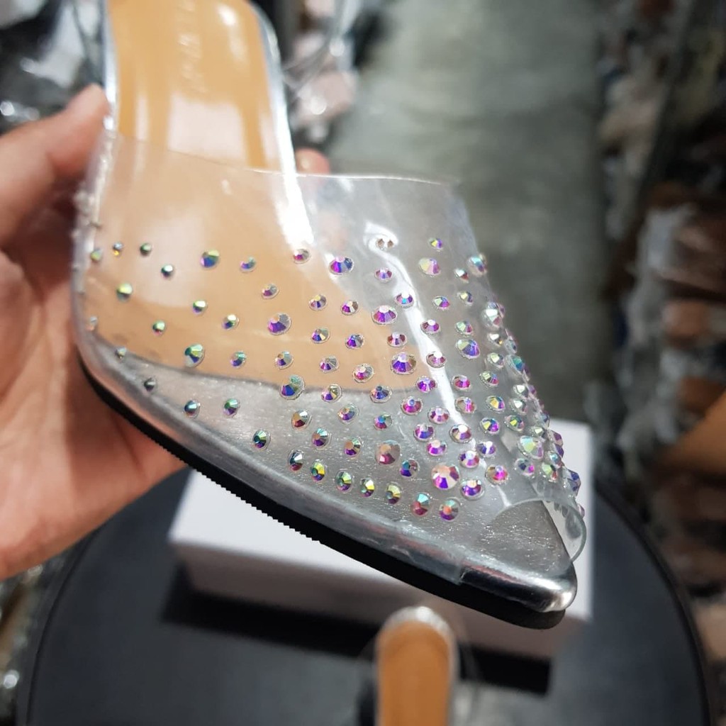 SANDAL HAK WANITA HEELS RUNCING TRANSPARAN KACA IMPORT KRISTAL MODEL TERBARU KONDANGAN MEWAH