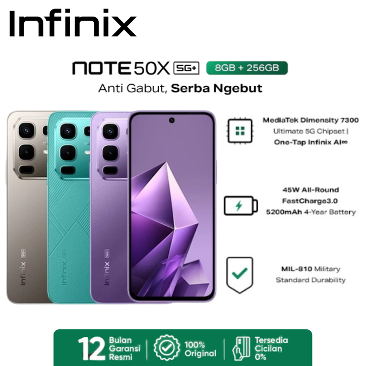 infinix note 50x 8/256GB NFC Up to 16GB Extended 5200 mAh 5G 6.67” HD+ Dimensity 7300 Ultimate garansi resmi