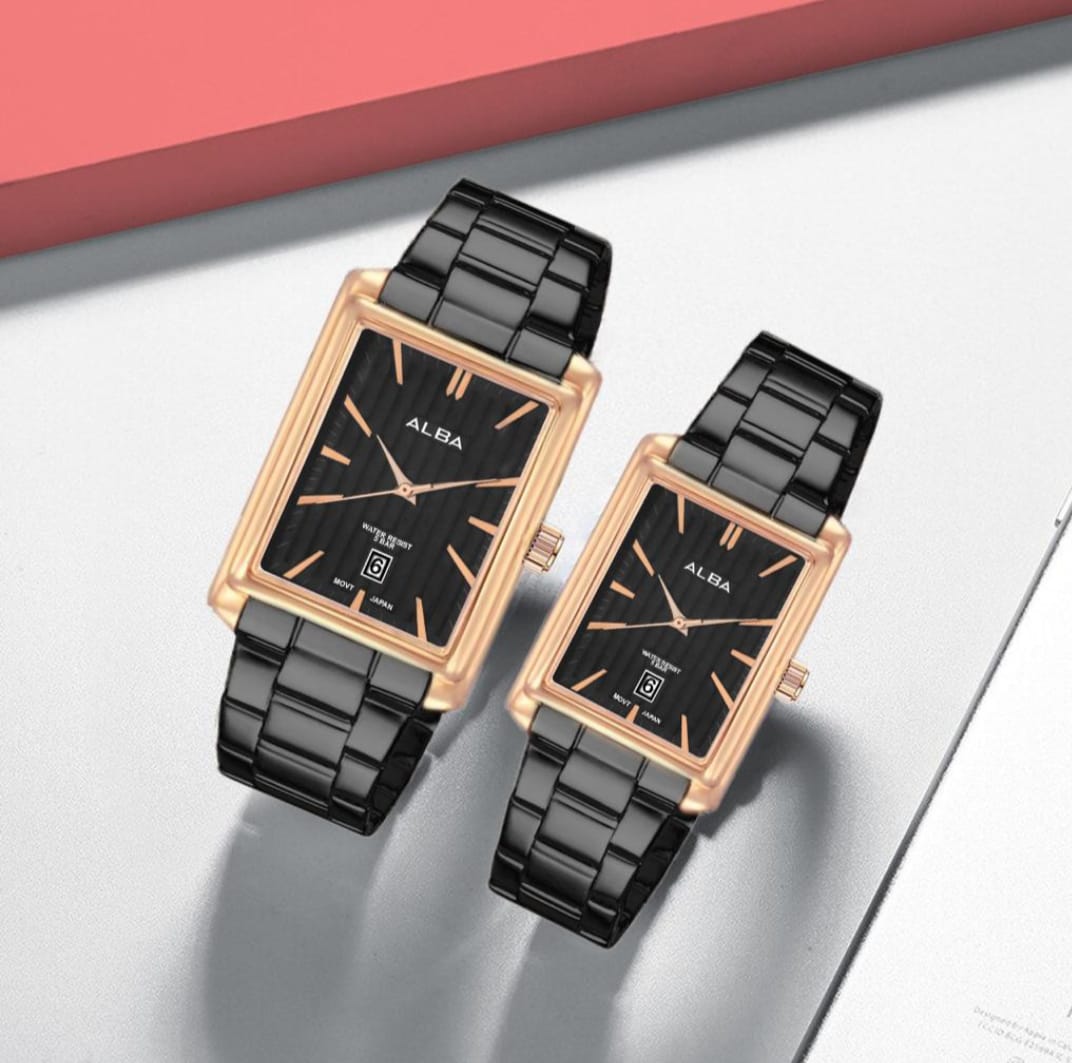Grosiran Jam Tangan Alba Couple B3661 Tanggal Aktif Tali Rantai - Jam Tangan Pria Wanita Include Box Original