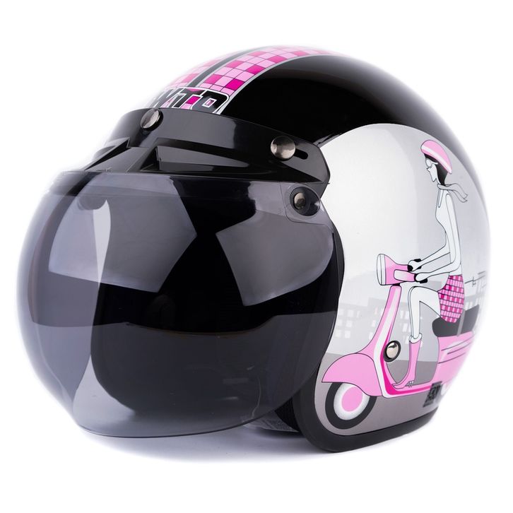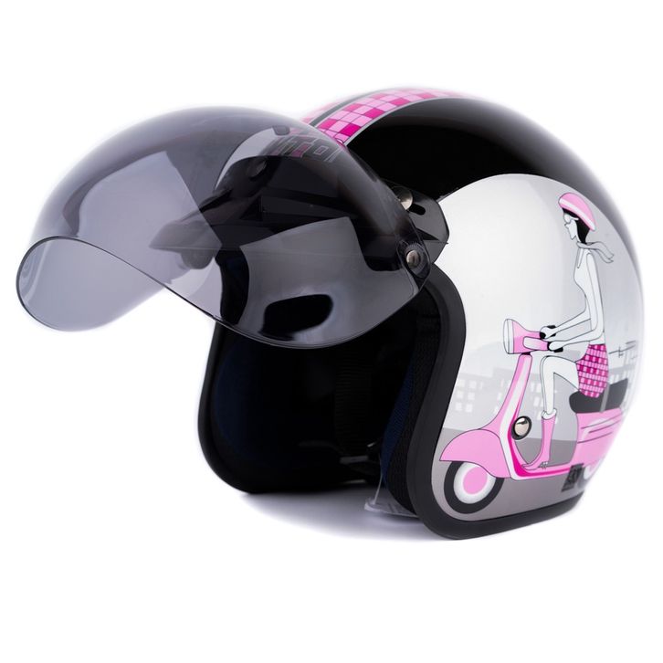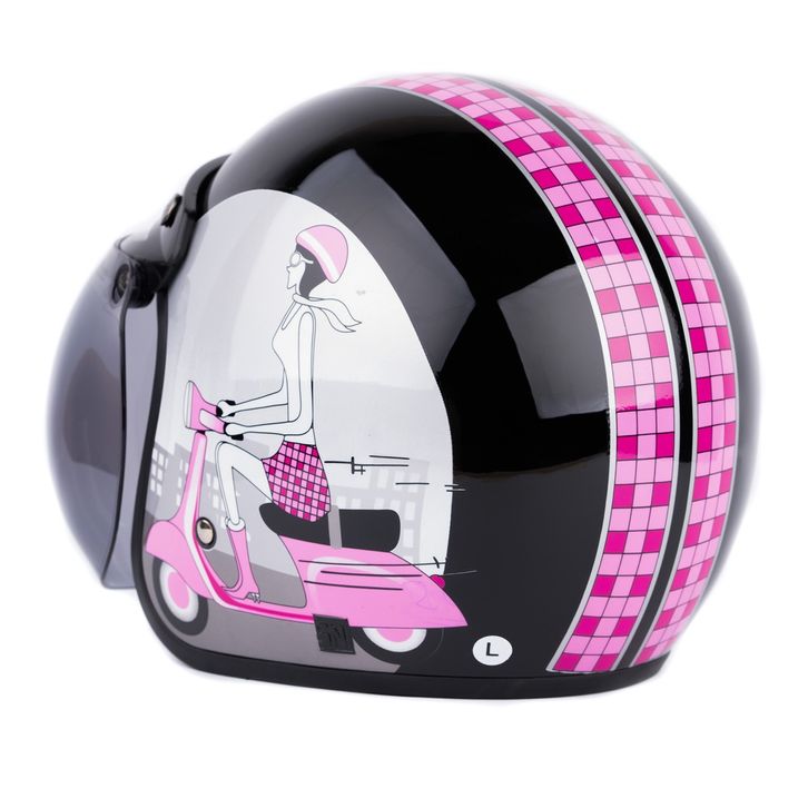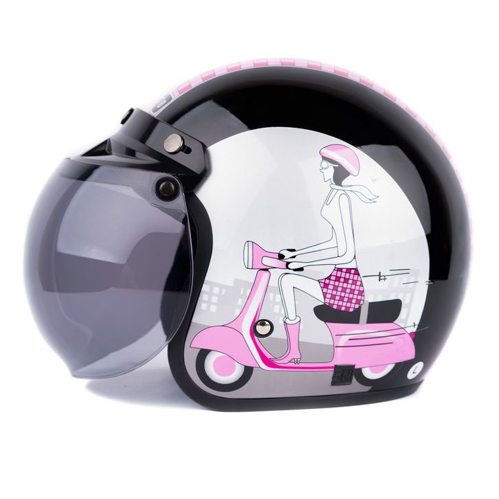 [Helm Dewasa] Helm Retro - Vespa Girl - Hitam Pink