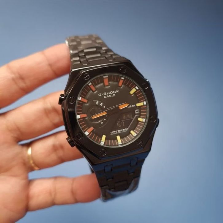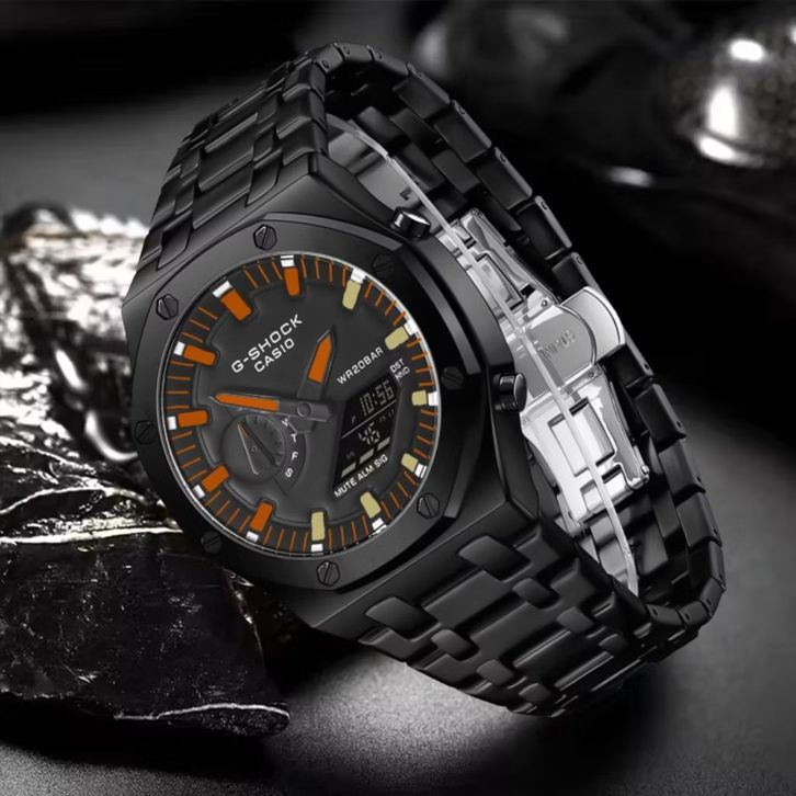 JAM TANGAN PRIA CASIO G-SHOCK GM-2100 BLACK LIST ORANGE YELLOW STAINLESS STEEL -FREE ONGKIR