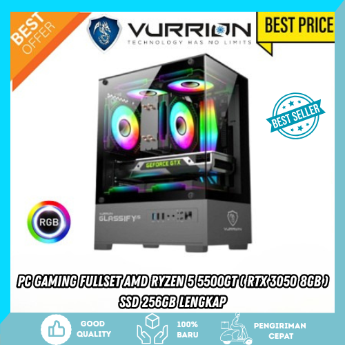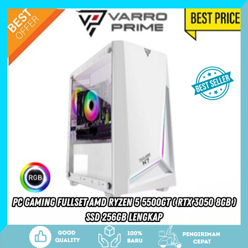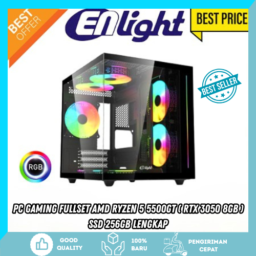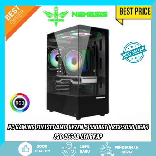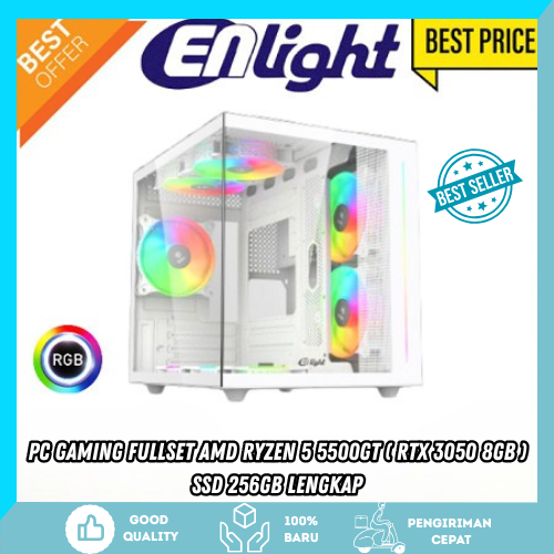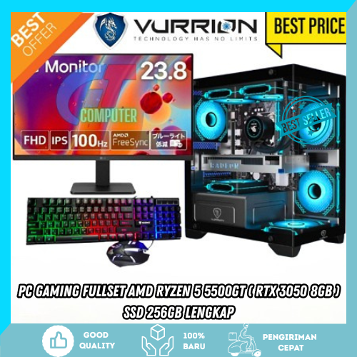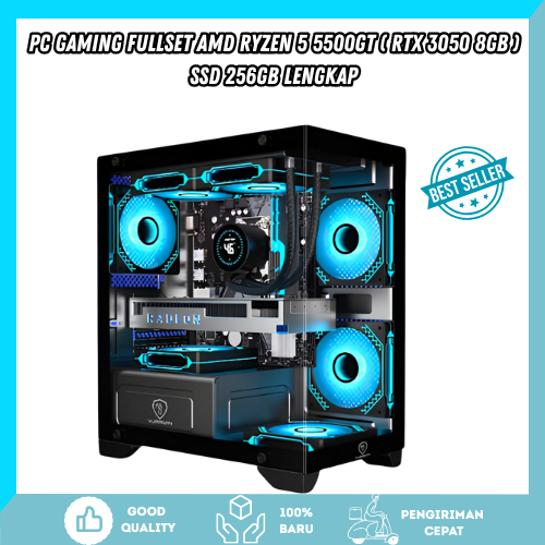 PC Gaming Fullset AMD Ryzen 5 5500GT ( RTX 3050 8GB ) SSD 256GB lengkap LED 24 inc Keyboard Mouse GAMING