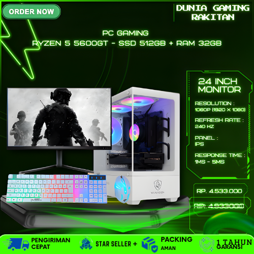 PC GAMING FUL SET RYZEN 5 5600G MURAH CPU GAMING FULLSET KOMPUTER GAMING FULL SET PAKET PC I5 GAMING RAKITAN TERMURAH