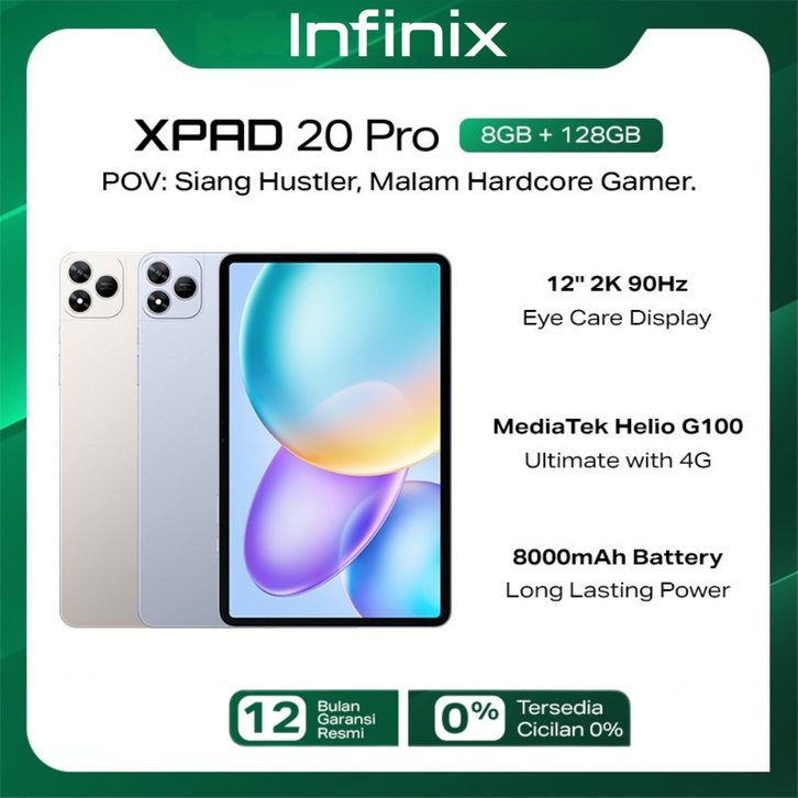 INFINIX XPAD 20 PRO 4G LTE 8/128GB MEDIATEK G100 ULTIMATE 12" 2K 90HZ 8000 MAH TABLET GAMING TAB ANDROID 15