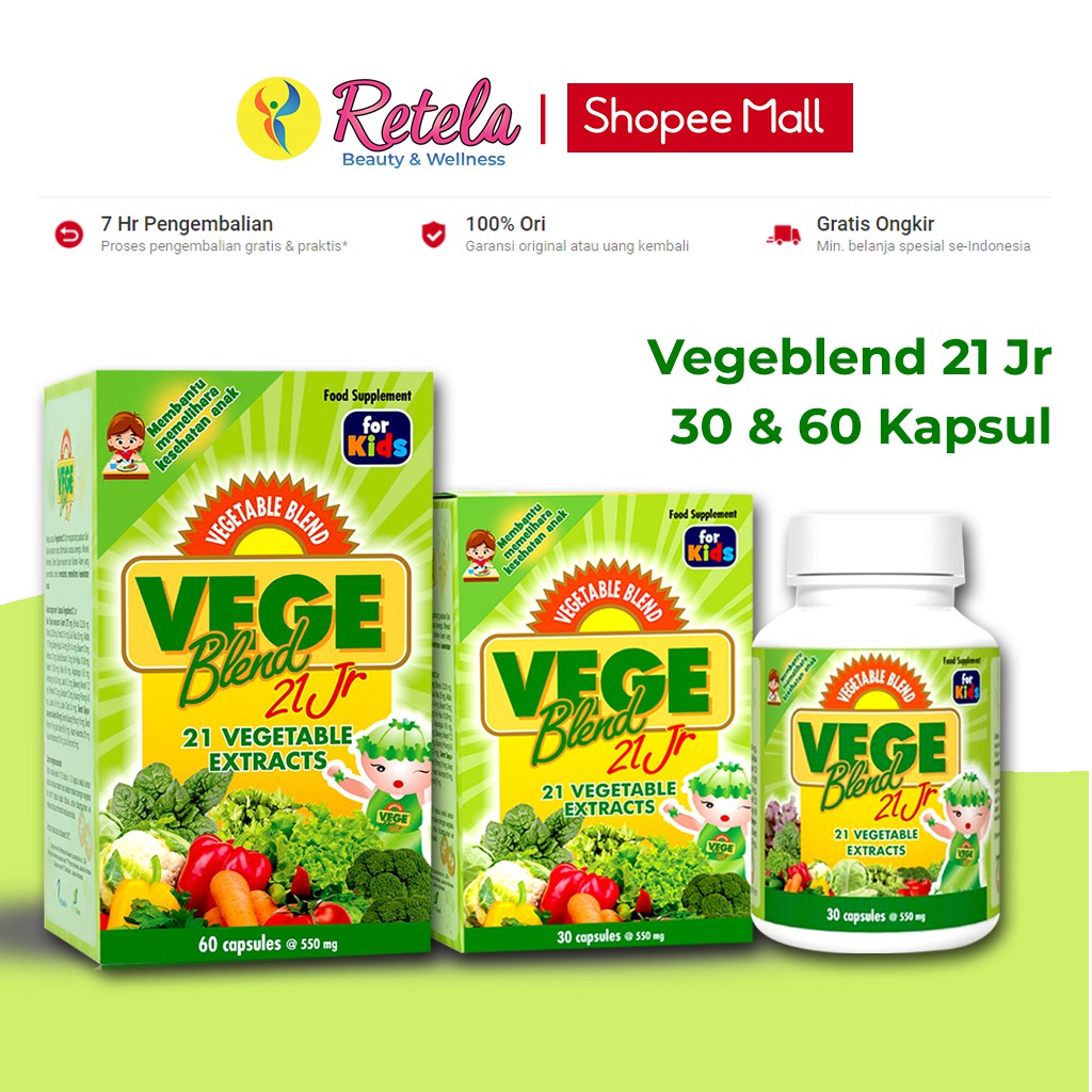 VEGEBLEND 21 JUNIOR EKSTRAK 21 JENIS SAYURAN - 30 & 60 KAPSUL SUPLEMEN SAYURAN UNTUK ANAK SK1
