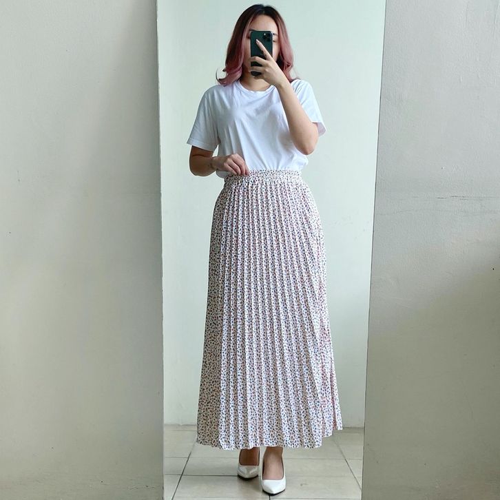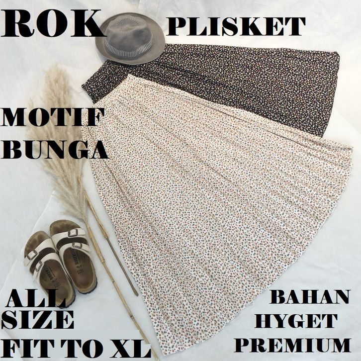 YEONSU - ROK PLISKET MOTIF BUNGA FLORAL BAHAN HYGET PREMIUM
