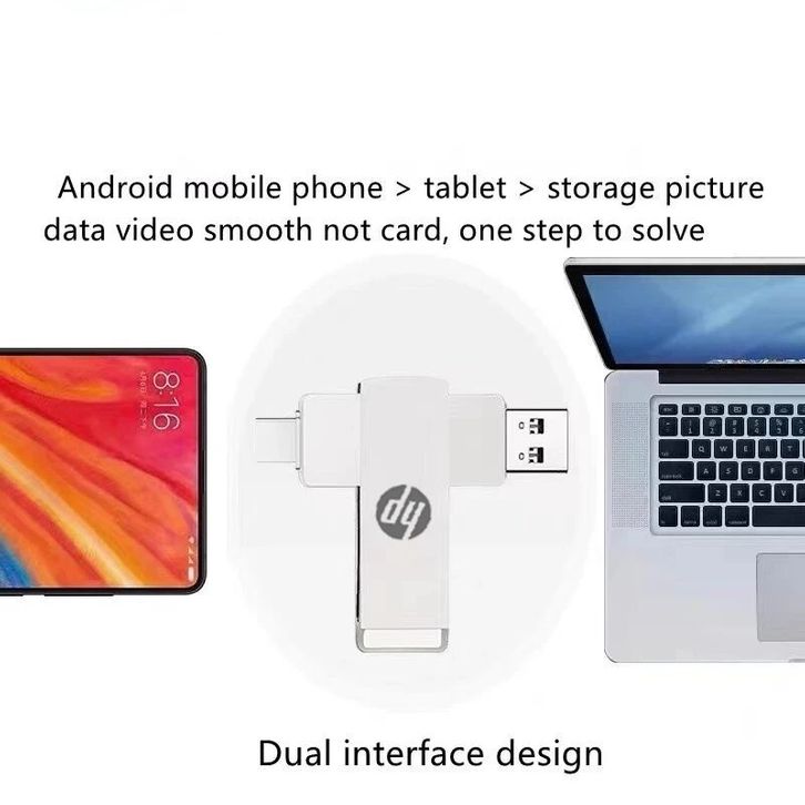 HP U502 USB Flashdisk TYPE-C Kecepatan Tinggi: 32GB-1TB, Flash Drive Logam USB untuk Komputer Android & Perangkat Lainya