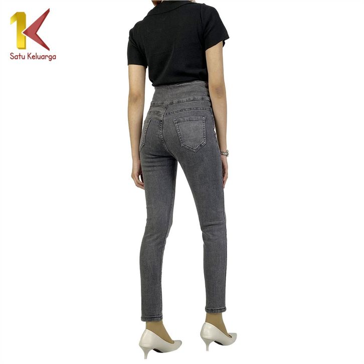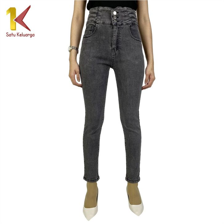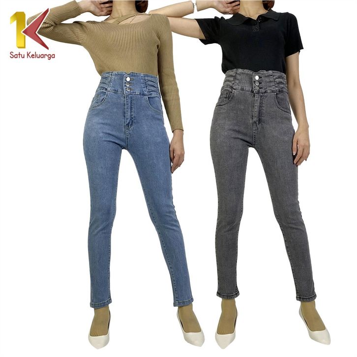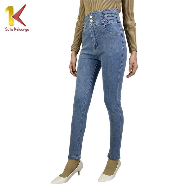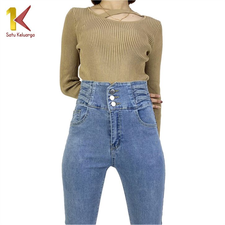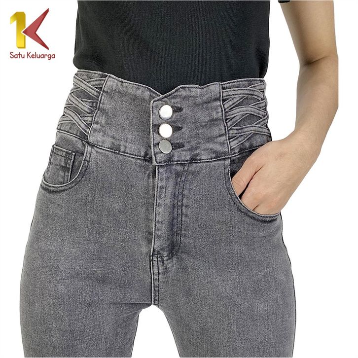 Celana Skinny Jeans Stretch Highwaist Wanita Model Tali Silang Samping Fashion Denim Ngaret Celana Panjang 1K P559