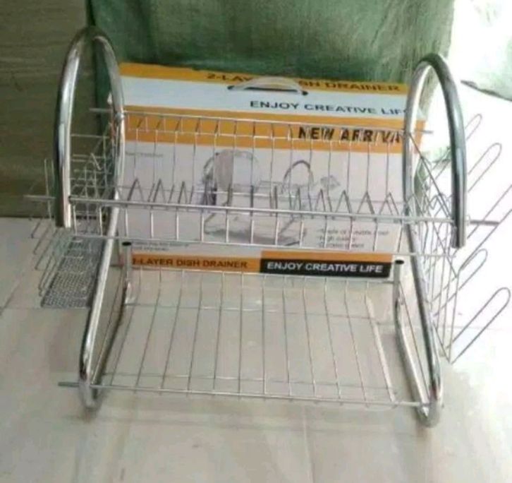 (GRATIS ONGKIR) rak piring 2 susun layer tingkat stainless gelas dapur dish desainer murah