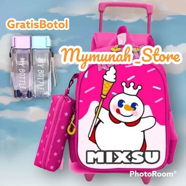 Tas Troli Tas Dorong Anak Perempuan Sekolah Dasar Karakter Boba MIXUE Murah