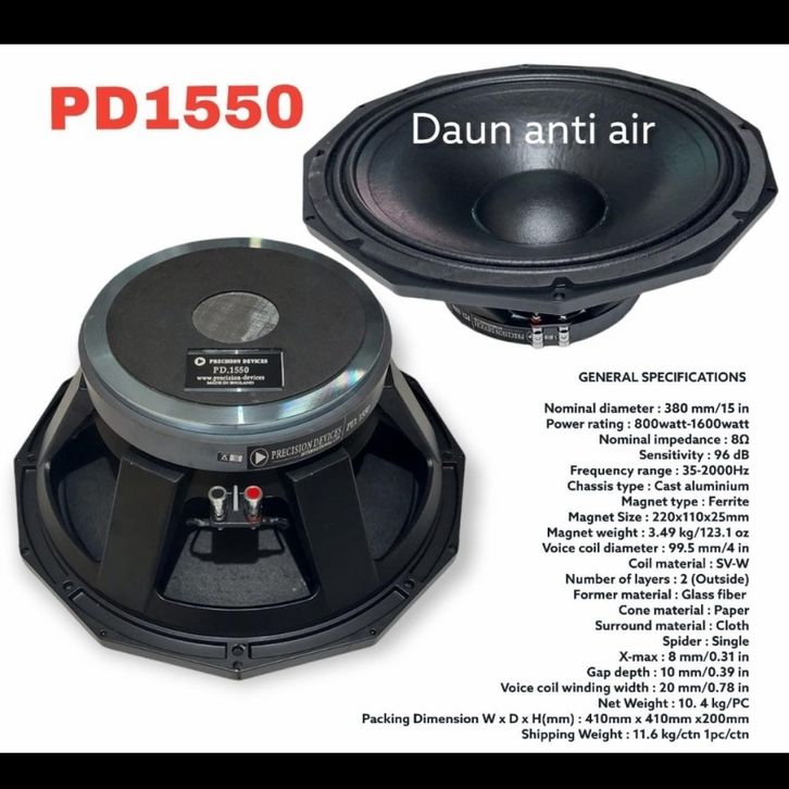 Komponen Speaker PD1550 PD 1550 15 inch vc 4 in