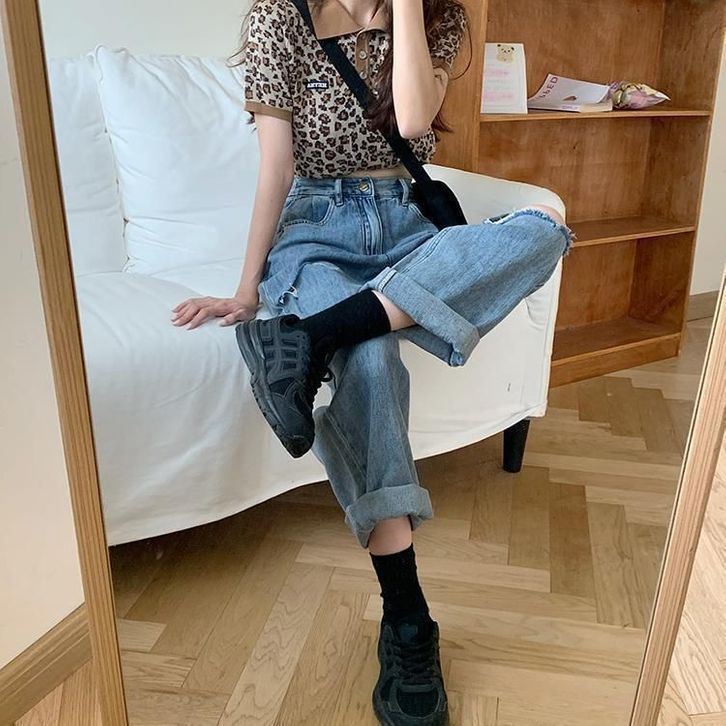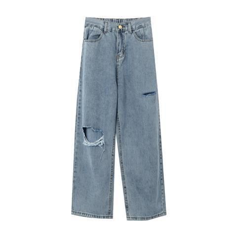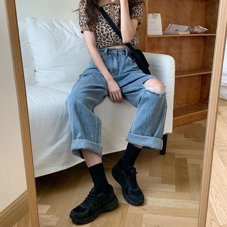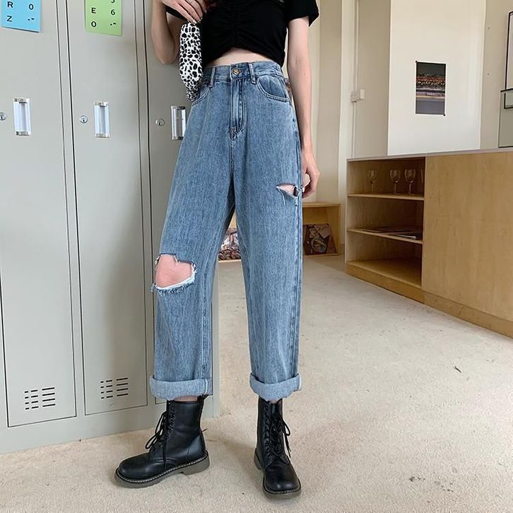 Ukuran Jumbo New High Waist Celana Ripped Jeans Wanita