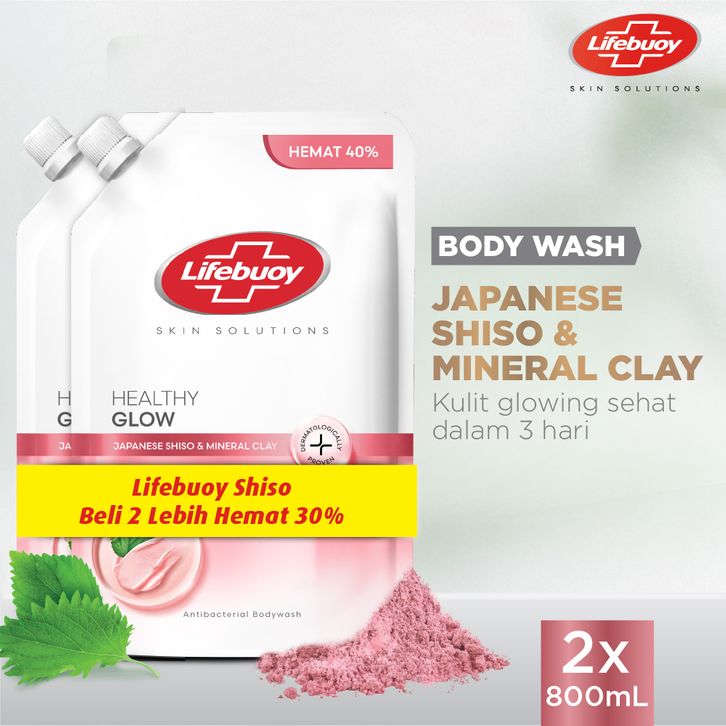 Lifebuoy Sabun Mandi Cair Shiso dan Mineral Refill 2X800Ml