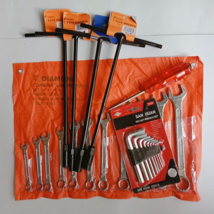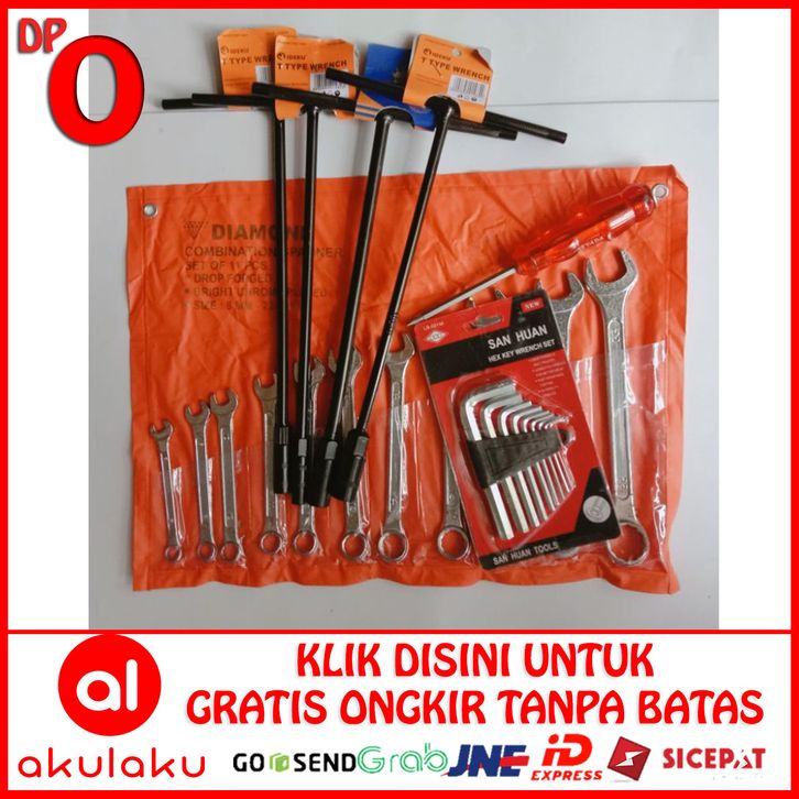 CICILAN/ PAKET KUNCI RING PAS SET + 4 PCS KUNCI T + KUNCI L + OBENG KETOK BOLAK BALIK 4 INCH