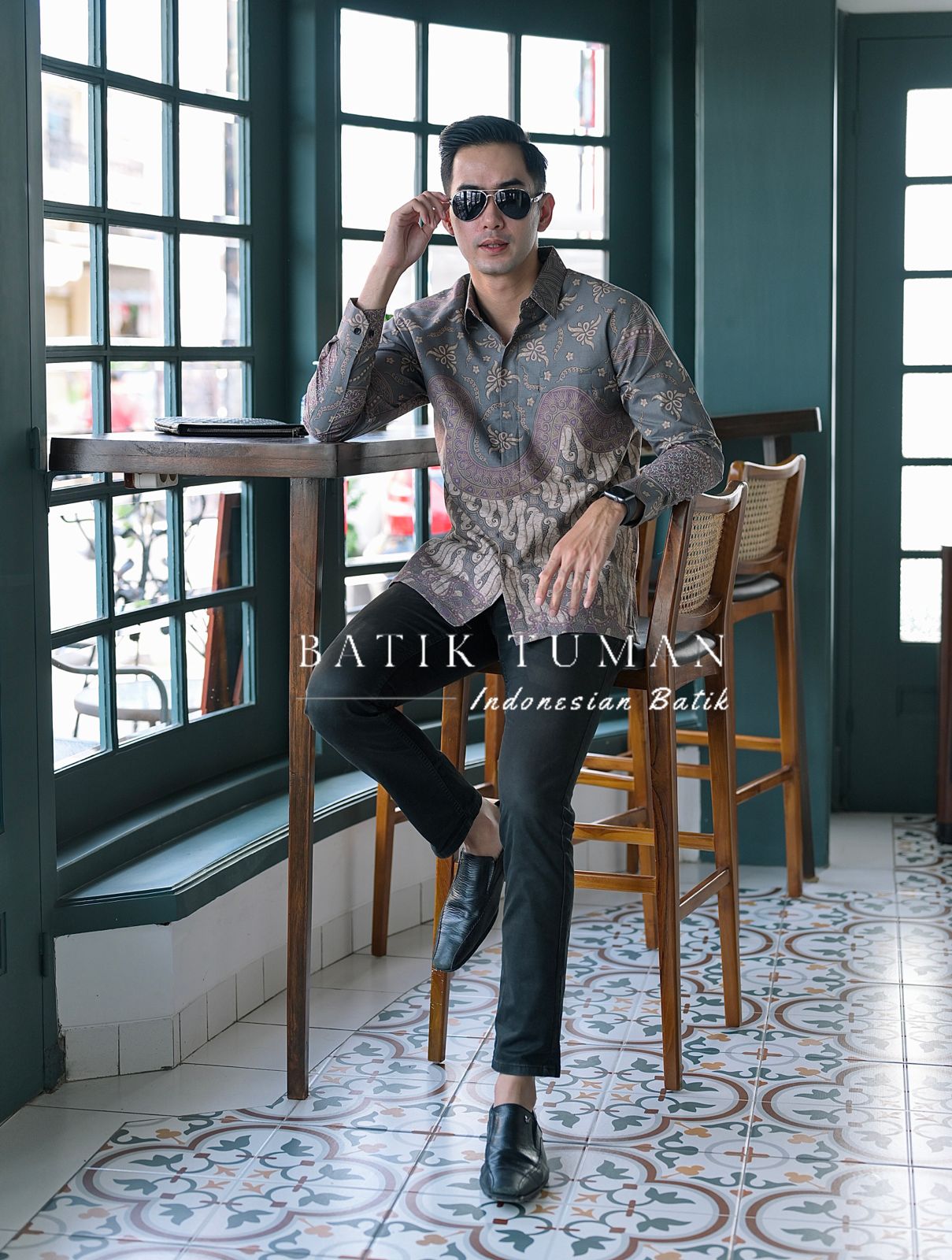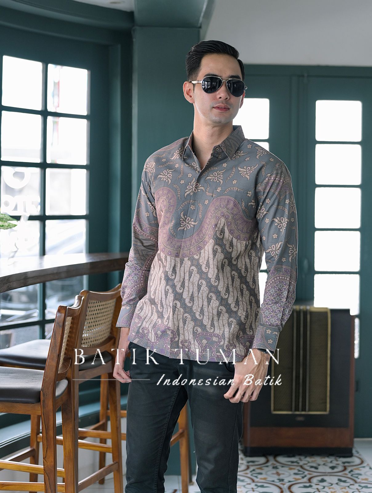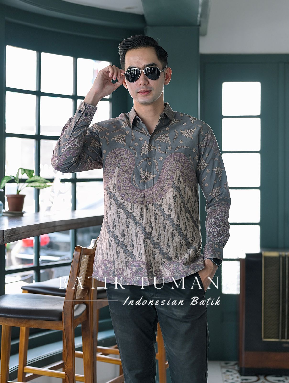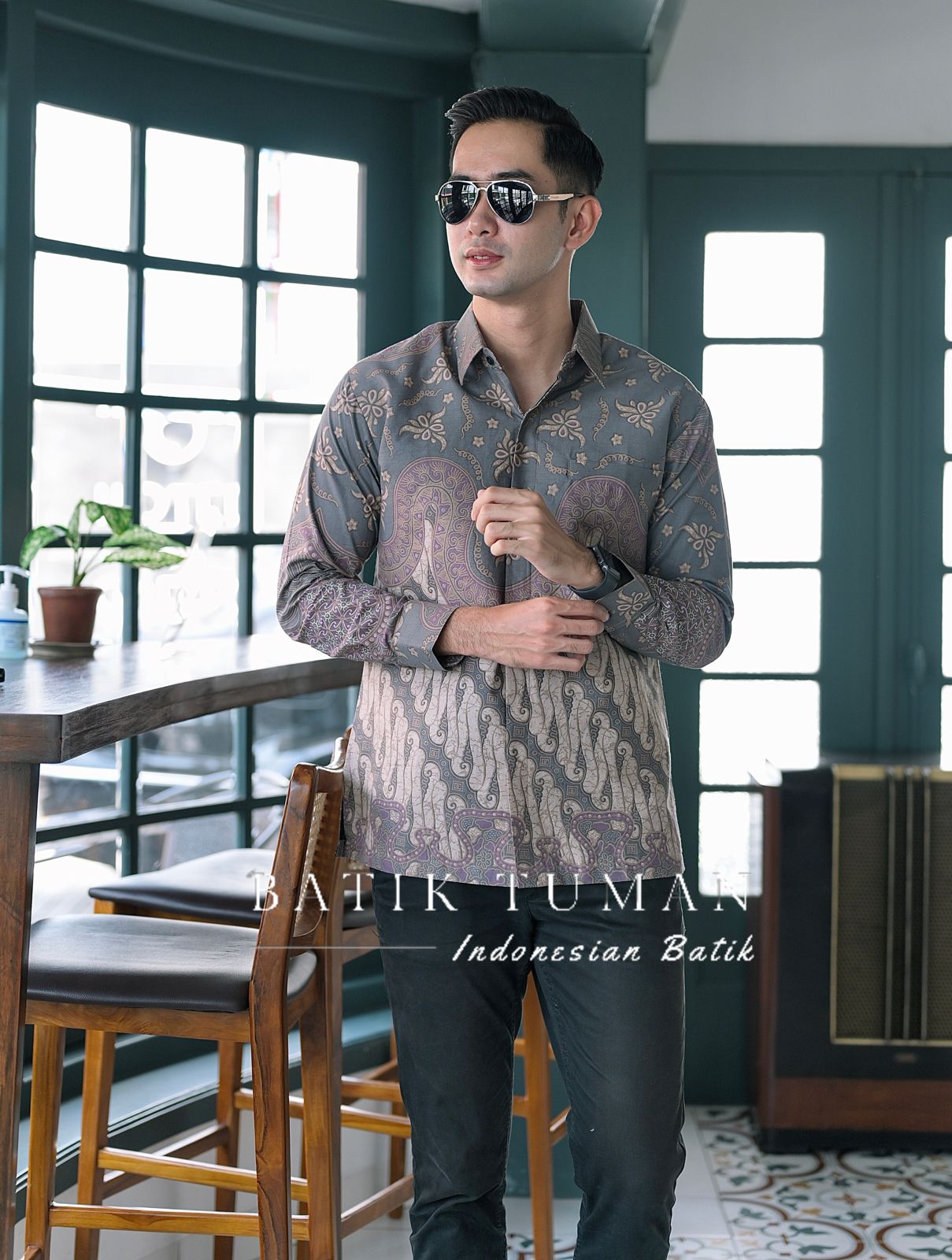 KEMEJA PRADIPTA SOFT GREY DUSTY PASTEL Kemeja Batik Pria Warna Grey Pastel Bahan Katun Halus Kemeja Batik Lengan Panjang