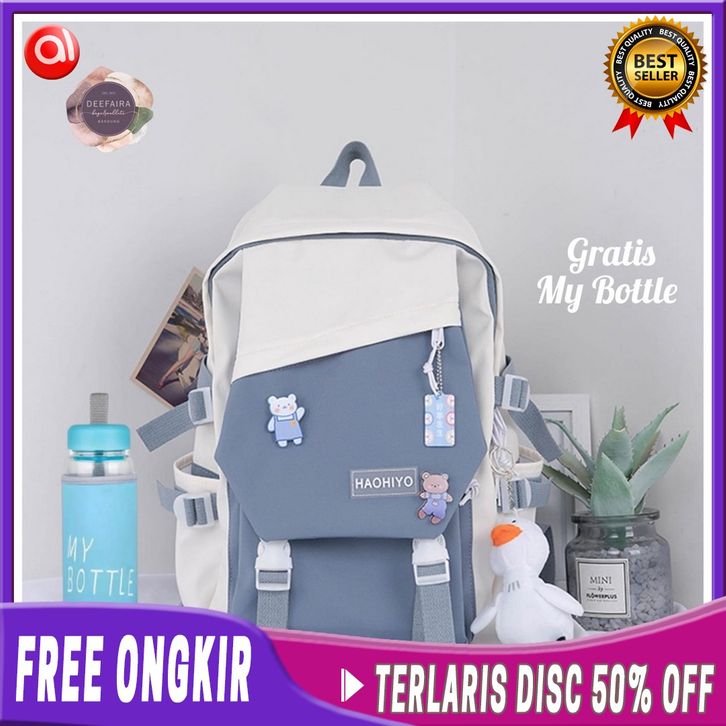 FREE ONGKIR Tas Ransel Wanita Motif HHI0 Gratis Botol Minum Tas Sekolah Sd Smp & Sma