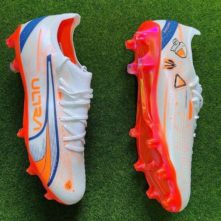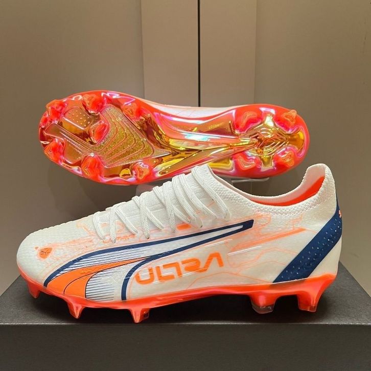 (BEBAS ONGKIR) Sepatu Bola Puma Ultra Ultimate White Orange Blue FG grade original TERBARU