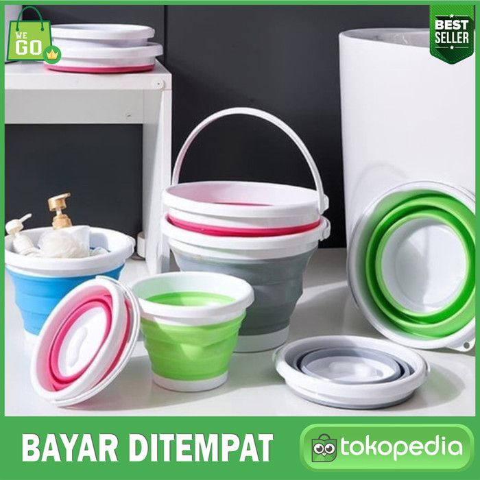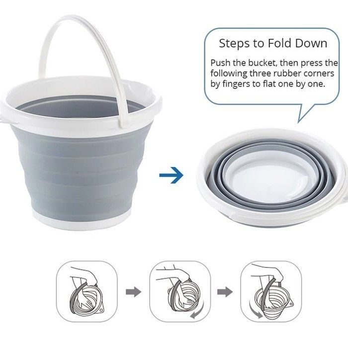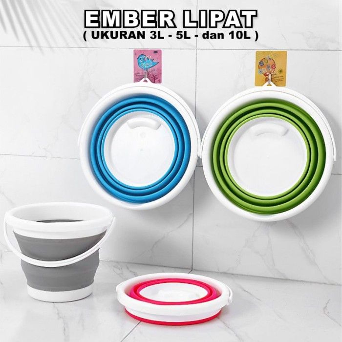 Murah Ember Lipat Portable 10 Liter Travel Baskom Wadah Serbaguna - 10 L - BIRU Keren