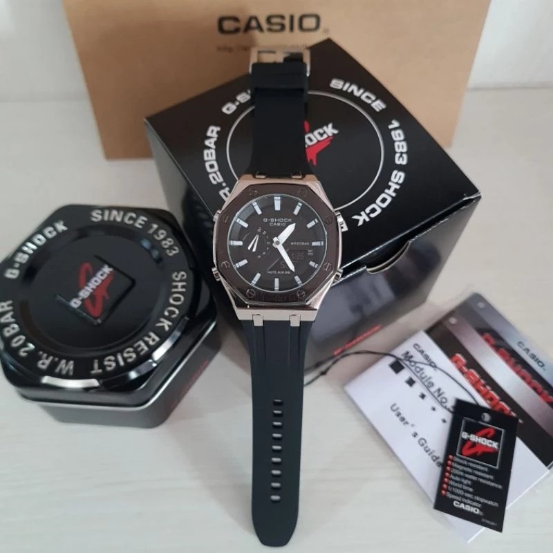 JAM TANGAN PRIA CASIO G-SHOCK GM-2100 SILVER RING BLACK RUBBER - FREE BOX BIASA FREE ONGKIR