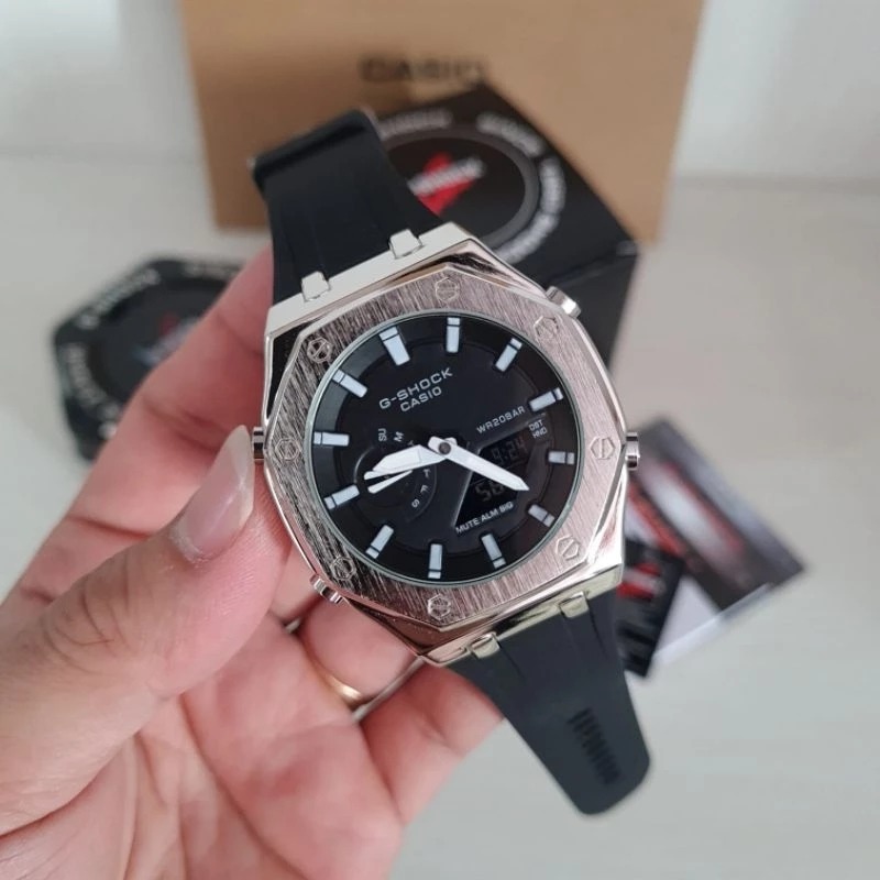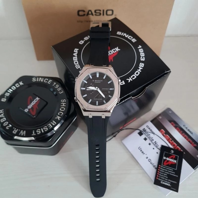 JAM TANGAN PRIA CASIO G-SHOCK GM-2100 SILVER BLACK RUBBER - FREE BOX FREE ONGKIR