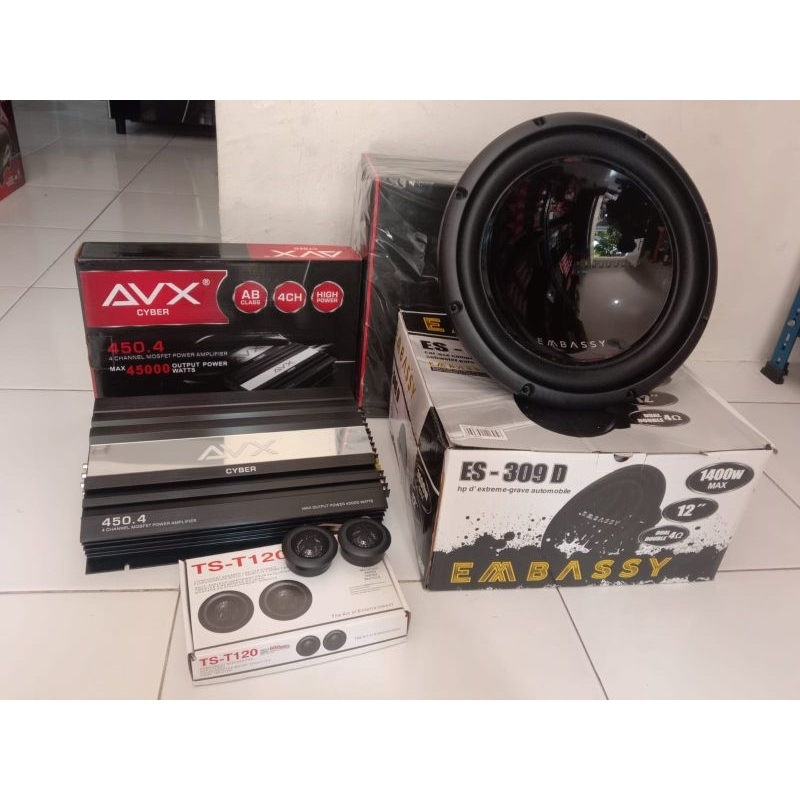 PAKET AUDIO MOBIL EMBASSY EM200 12 INCH 4 CHANNEL / PAKET AUDIO MOBIL / AUDIO MOBIL / SPEAKER MOBIL / SPEAKER SUBWOOFER