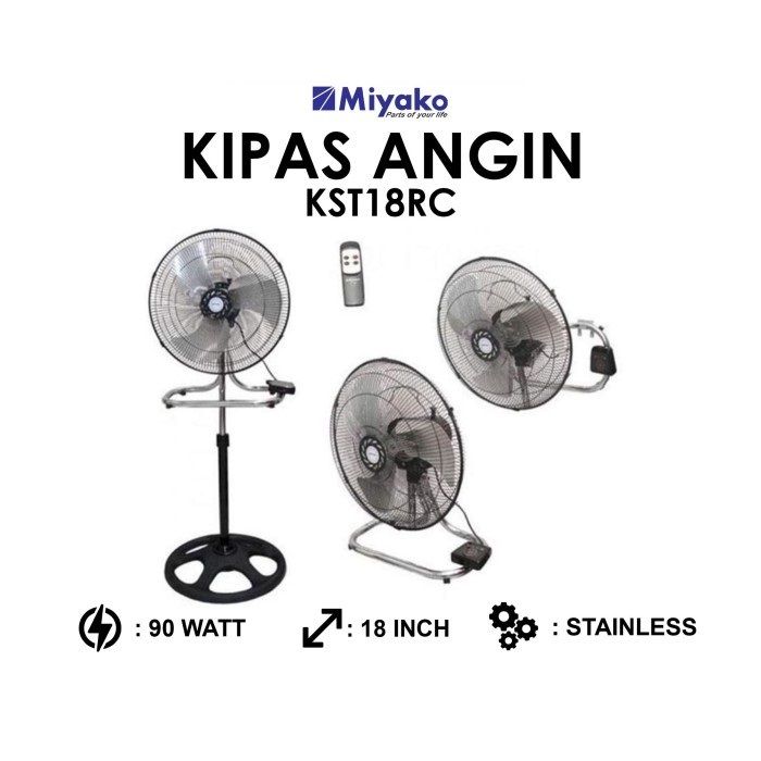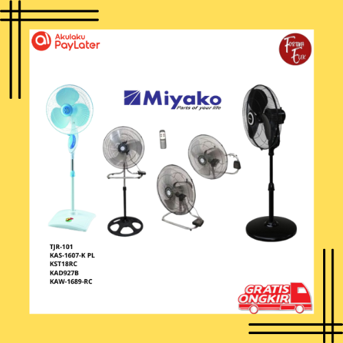 KIPAS ANGIN BERDIRI MIYAKO 3 IN 1 STAND FAN , DESK FAN , WALL FAN + REMOTE / KIPAS ANGIN TJR 101